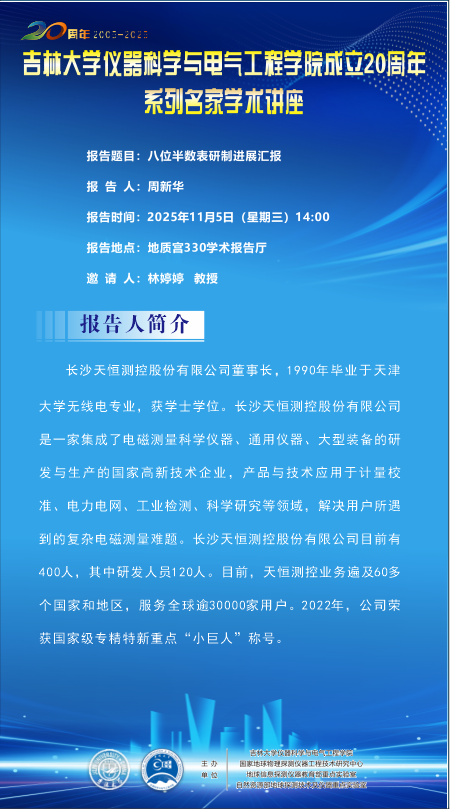 吉林大学仪器科学与电气工程学院成立20周年系列名家学术讲座——周新华