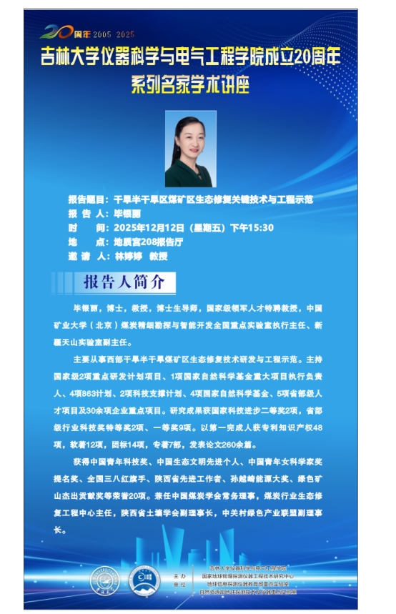 吉林大学仪器科学与电气工程学院成立20周年系列名家学术讲座——毕银丽